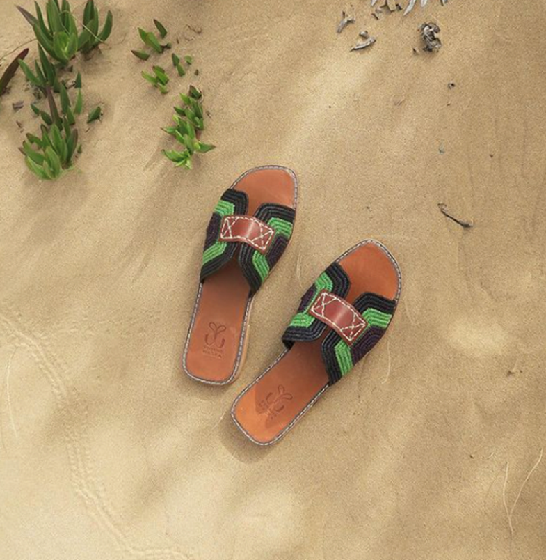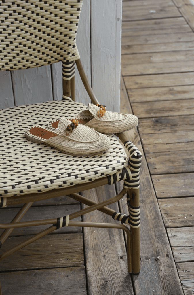 Handwoven in Essaouira–a city in Morocco–Yvonne Waska is known for their raffia shoes. Launched in 2012, these shoes merge ancient craftsmanship with a refined sense of style. This Parisian brand has a workshop in Essaouira where local women weave raffia which is a plant-based fibre made from palm endemic. Although it looks rough and rugged, this material is naturally soft and comfortable.