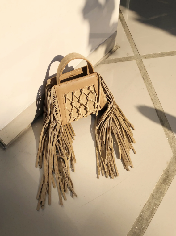 The mini Amu fringes come in an array of colour options. It’s the tiny edition of the brand’s most famous silhouette. Made out of premium leather, take note of the macrame handmade detailing on the front. Carry it like a clutch or wear it like a crossbody, you can give into the spirit of the island whether you’re travelling by boat from Ravello to Sorrento or lounging around in South East Asia. Fashion that’s also fun, who wouldn’t love it?
