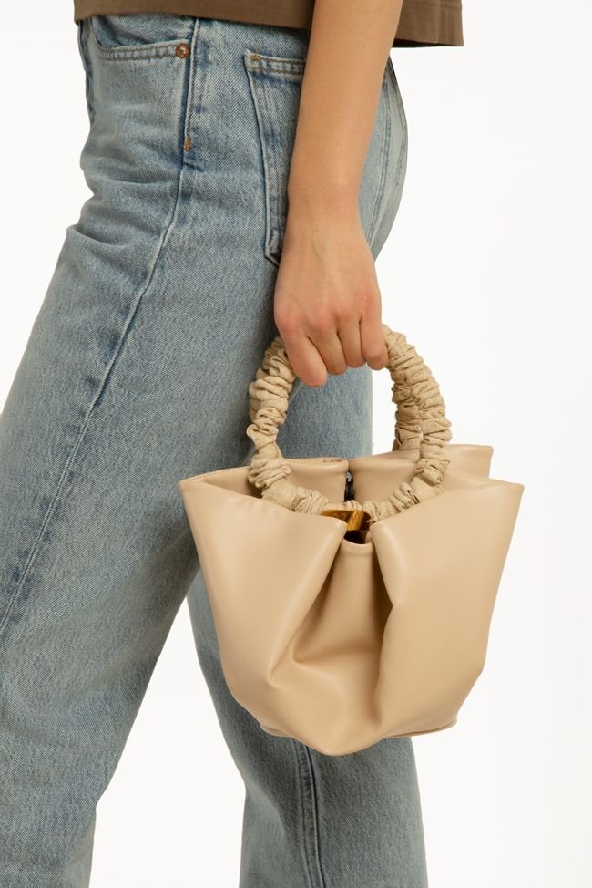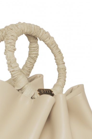 Made with vegan leather, this Dumping Tote is one of our favourites this season. It features ruched handles that give it a playful twist as well as a round shape that infuse a youthful energy into the design.