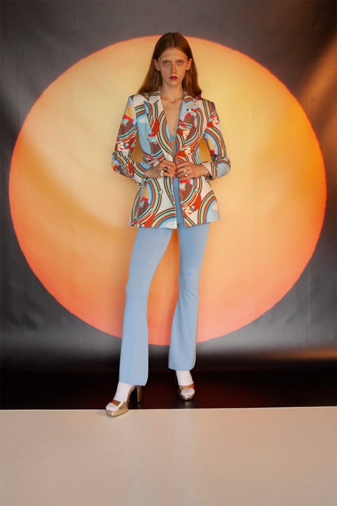 Need an outfit you can take from work to party outfit? We recommend this cool blazer and flared pants 16Arlington. Made with blended cotton, the oversized blazer has a belt closure for ease of wear. The contrasting flared trousers add gives the entire suit a seventies vibe which only add to its glamour! What do you think?