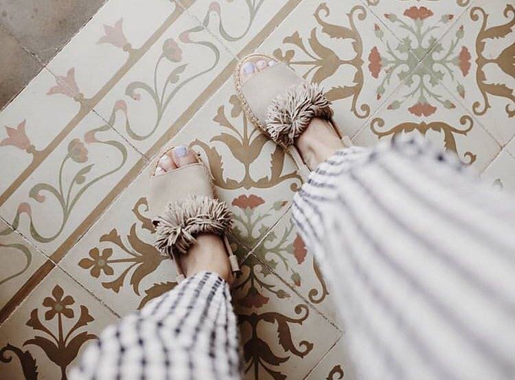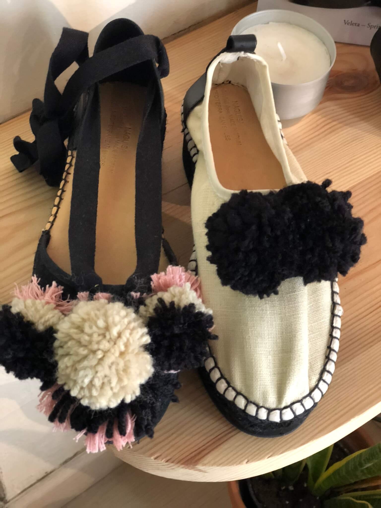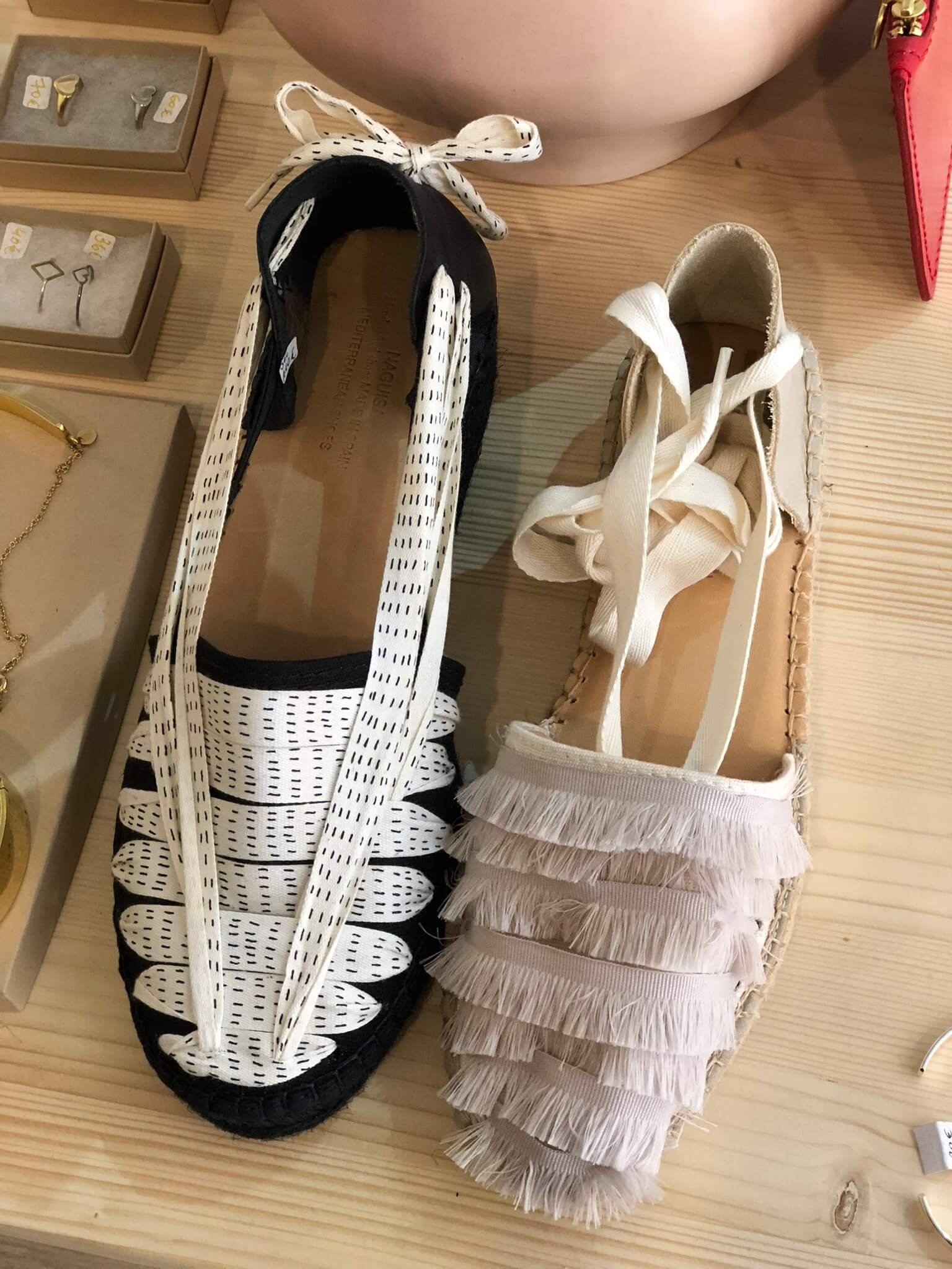 - AISPI shops here for fun espadrilles with details such as pom poms and stripes!