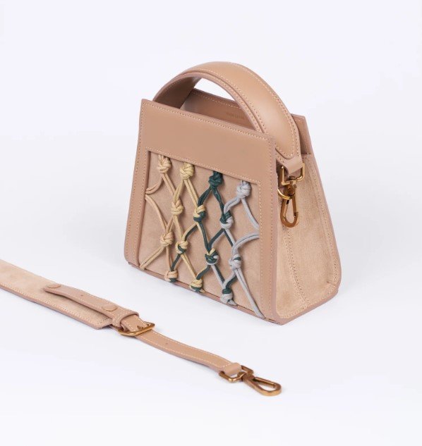This Amu handbag by the brand oozes zen vibes. Featuring a macrame detail, this medium sized bag can carry everything you need.