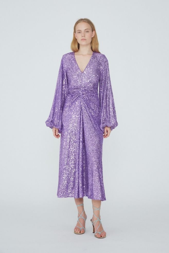 Fun neckline, balloon-inspired sleeves and a sparkly dress–what more do you need?