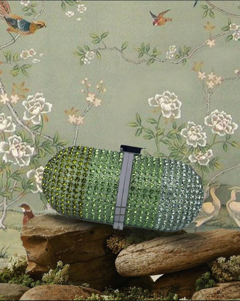This signature shape comes in multiple different colours and textures from shining Swarovski crystals to lustrous metal. For more egtravagant looks you can even find a feathered pill bag that happends to be the co-founder Shouq’s favorite design as it is elegant and chic and will make any outfit stand out just by carrying it. These elegant clutches radiate luxury as they are made of premium resin and brass with a shining chain and lock hardware, making it an eye-catching accessory, perfect finish for any chic ensemble. Ideal for a night out, weddings, or glitzy parties.