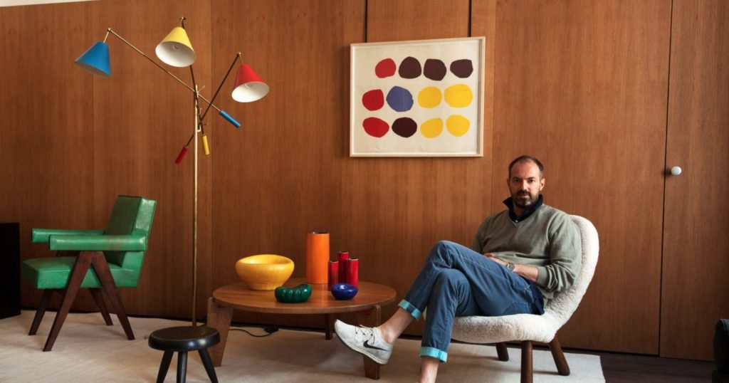Emmanuel de Bayser, a serious art enthusiast, welcomes us into his Berlin residence. For more than two decades, this enthusiast has amassed an extraordinary collection of furniture and ceramics, which he has presented in a particularly harmonious manner. Some pieces stand out, and our gaze lingers over the curves of Georges Jouve’s ceramics, the softness of Jean Royère’s Ours Polaire sofa, and the chairs by Jean Prouvé. Emmanuel de Bayser creates an inspirational environment in which the use of textures answers to a mastery of colour.