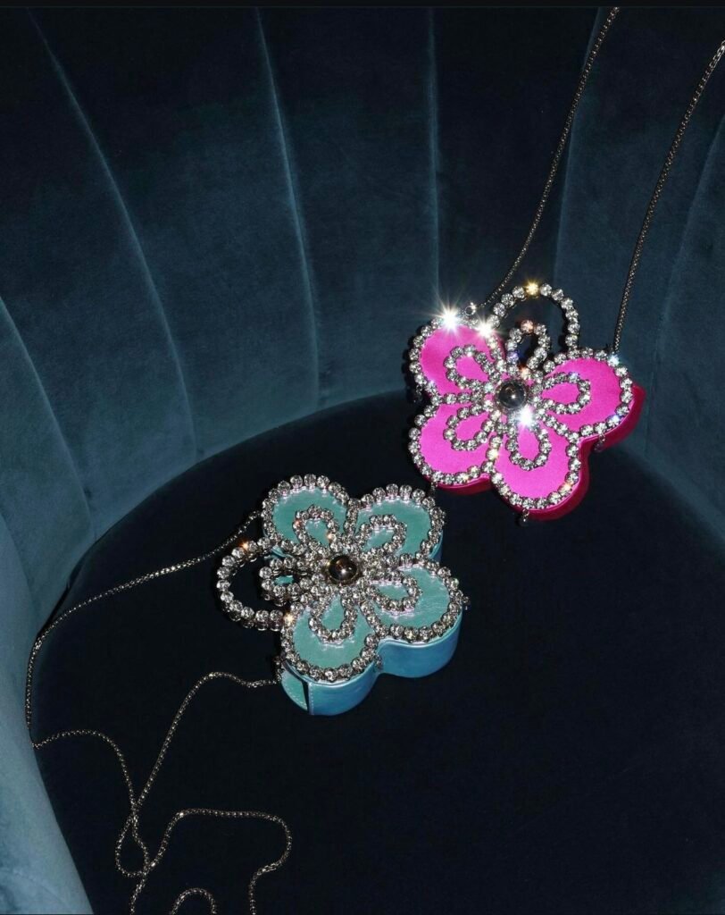 Their collection includes unconventional and unexpected shapes like hearts, flowers, and even butterflies, bringing out the femininity and gracefulness of the designs. Yet, the brand manages to add edginess and femininity simultaneously through their use of pearls, multicoloured crystals, and sequins for handles and key details. Therefore, it comes as no surprise that the queen of edgy fashion, Nicki Minaj, was seen carrying the Hot Pink Eternity clutch last summer.