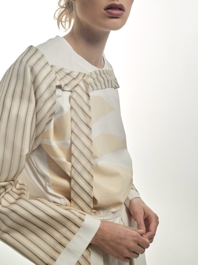 The design elements here are uncomplicated; fluid shapes and neutral colours. Beiges, whites, blacks and browns are the tones which act as your base while warm, sensual, reds, maroons and turquoises bring an additional edge to the outfit.