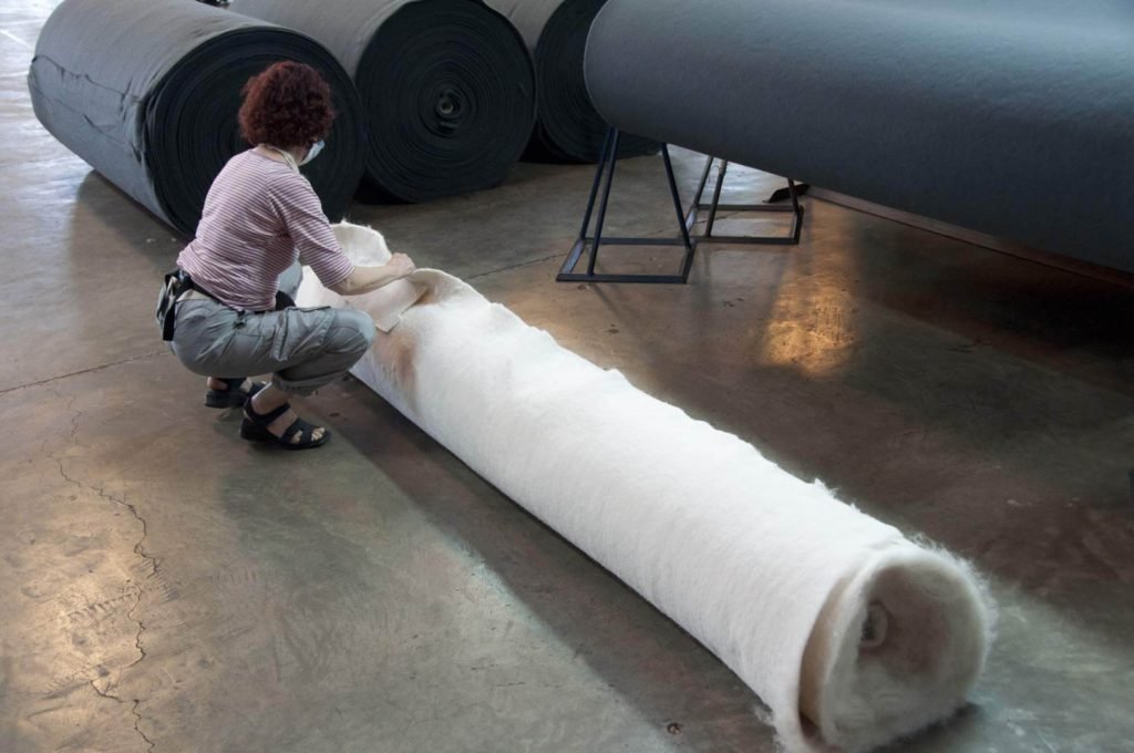 Once the leaf fiber is harvested, they undergo a procedure called decortication – wherein the longer fibers from the leaves are removed. Post that, the fibers are washed, dried and made ready for the next part of the process, called degumming. During degumming, the fibers go through an industrial process that converts them into a non-woven textile. This textile forms the base of Piñatex.