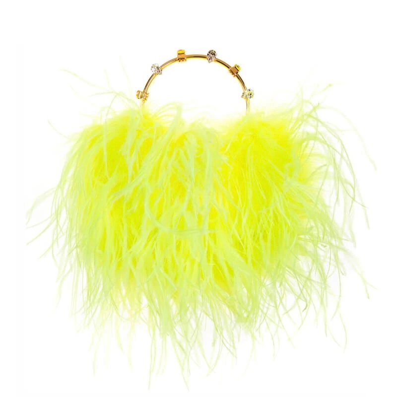 The SS20 collection uses a combination of pastel and neon colour ways, representing the playful yet classic aesthetic of the brand. With their iconic ice cream scoop and lollipop handles, the range has a nostalgic feel, something fun and different, something we all crave right now. Feathers, velvet, satin and glitter, as well as giant pearls with gold metal work, these pieces make a statement each time.