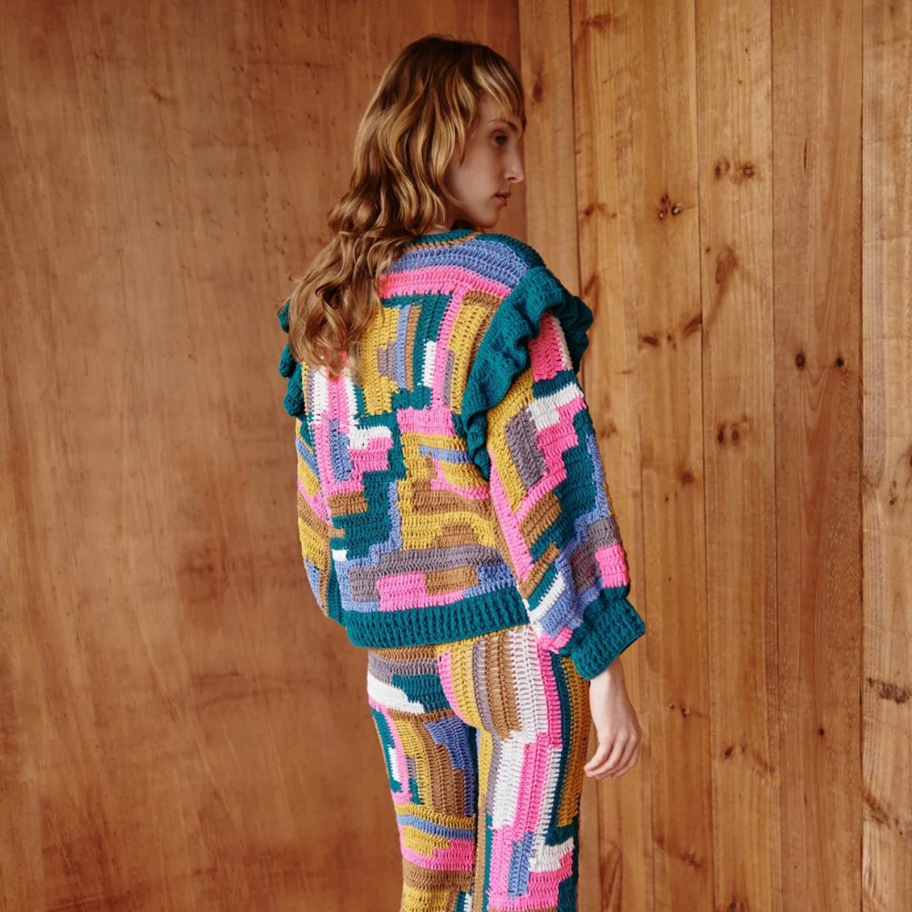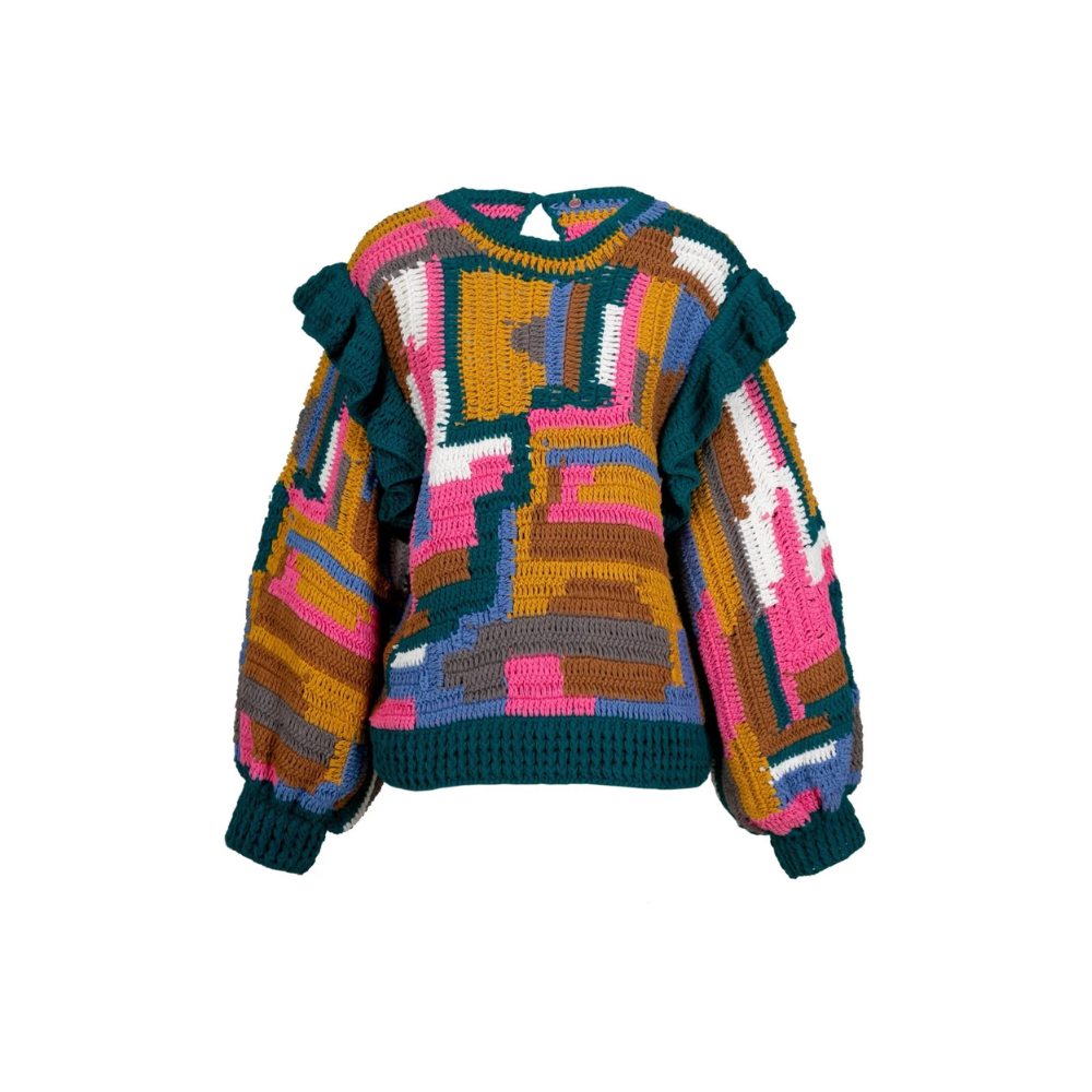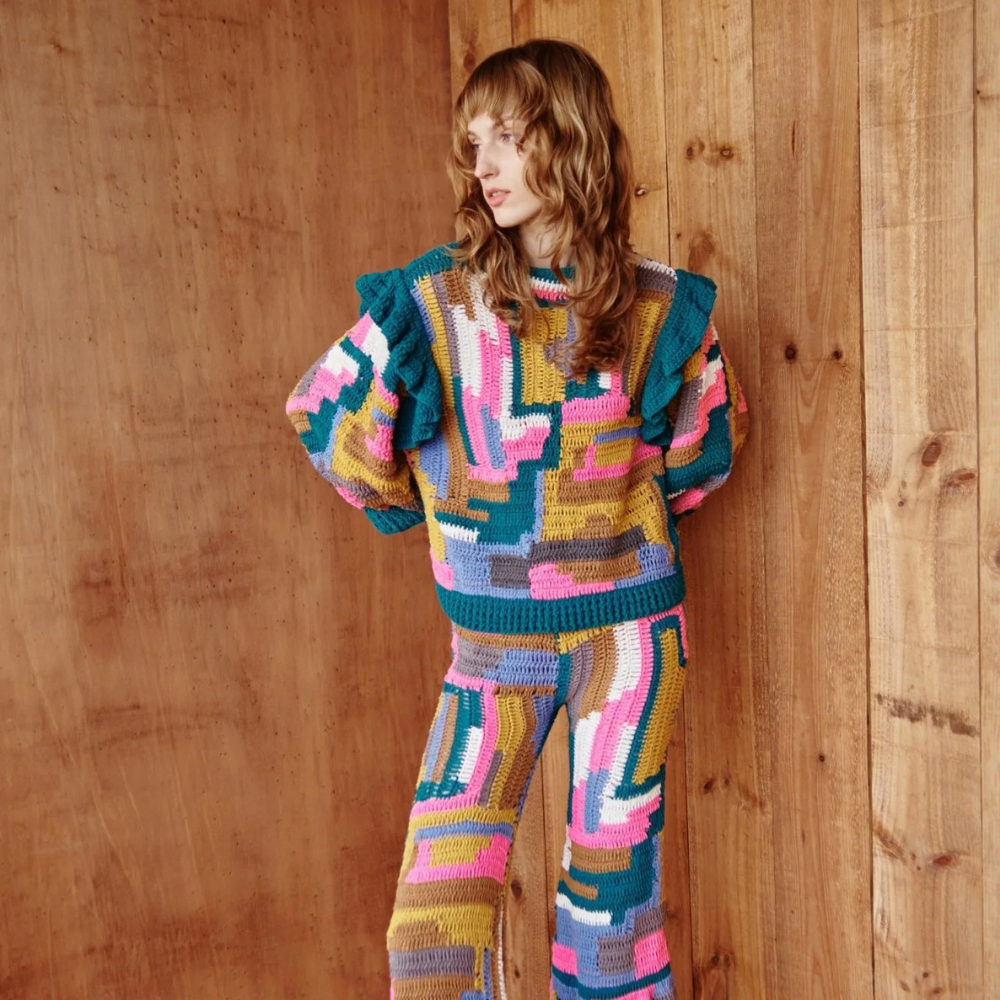 Elevate your wardrobe this season with the Cravina Top by Celia B—a vibrant statement piece that perfectly balances comfort and bold style. Made from 100% cotton, this playful knit top features an eclectic mix of colours in pink, green, and yellow, adding a joyful touch to any outfit. With its broad, long sleeves and flattering round neckline, it’s the ideal companion for sweater weather.