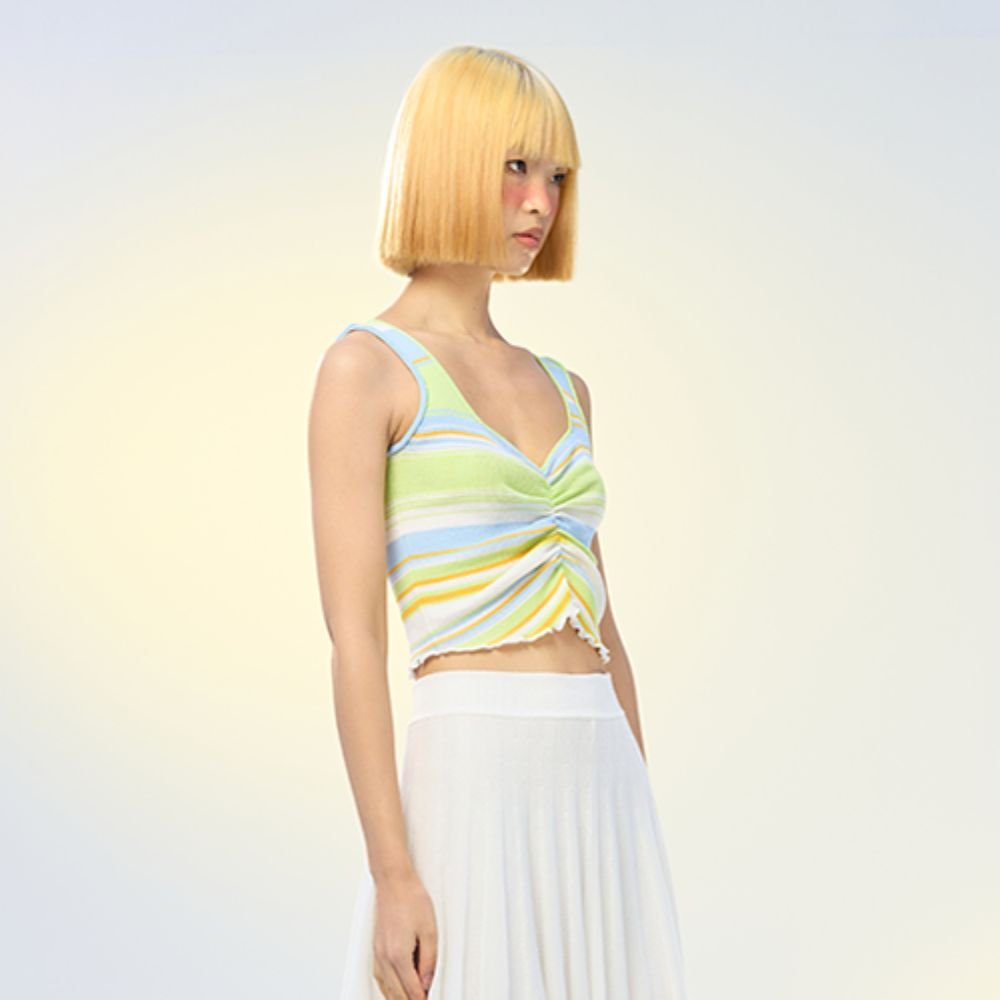 Warm, soft, and beautiful, this Chau Rising knit camisole is perfect for all your winter layering. Made from high-quality knitted materials, it features a collage of soft pastel colours that are perfect for those gloomy winter days. It has a scrunched up design at the front which is offset by its v-neck silhouette.