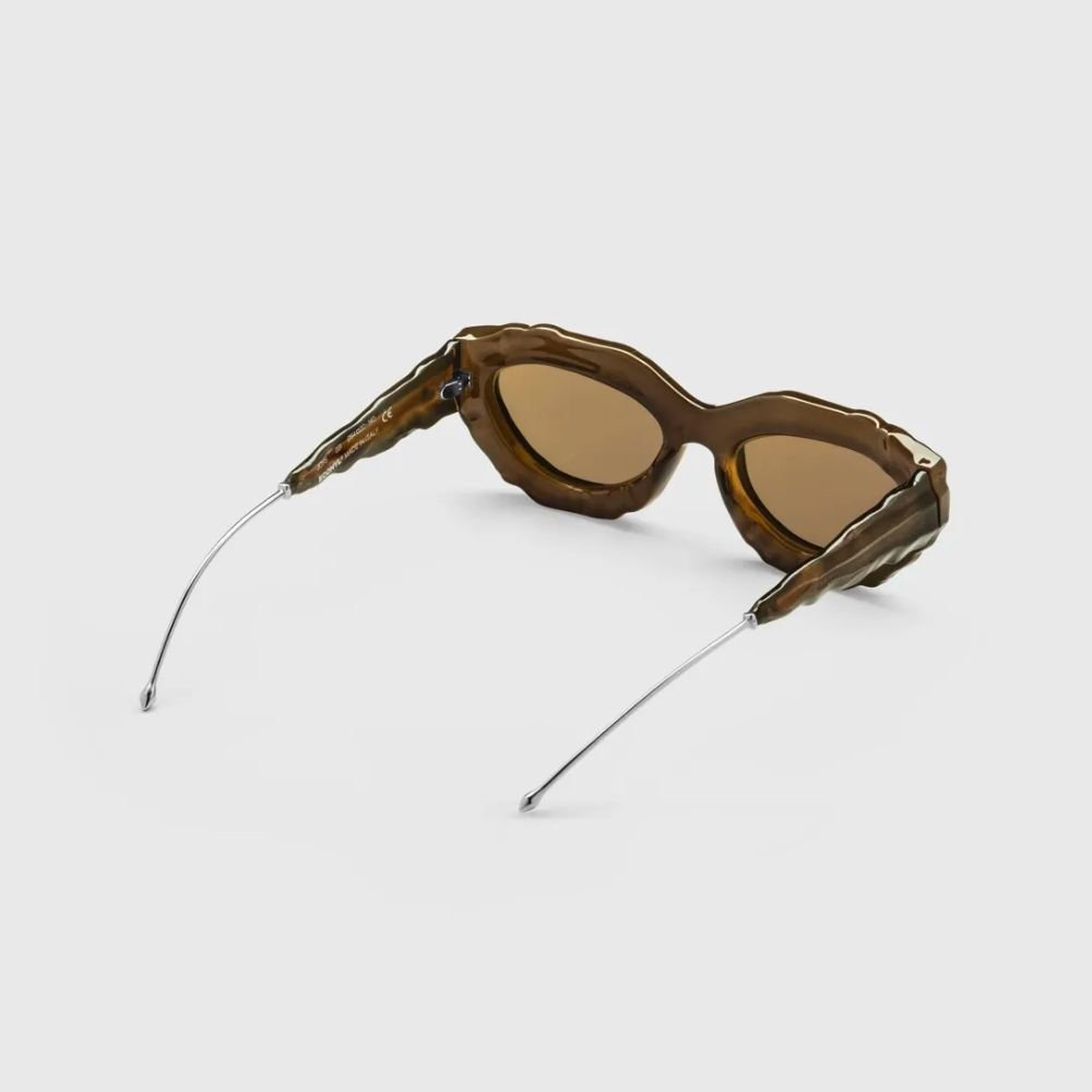 Our oyster-white sunglasses base their aesthetic on vividly fluxional lines that render this style a uniquely elegant statement piece. Expertly made in Italy with the utmost planetary-respect, they feature subtle high-value real silver branded details.