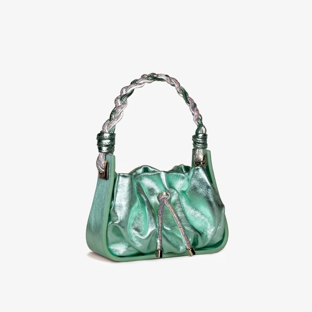 The new Nemidiana La Mini Kaleido infuse a sophisticate allure finished with its rhinestones and leather braided handle with its iconic metal accent whose shape echoes of stardust and starry nights. Nemidiana La Mini Kaleido weaves details and rich reflections, embodying astonishing details and the brand’s vision of creativity and timeless craftmanship. The perfect mini bag for adding a touch of shine to your outfit.