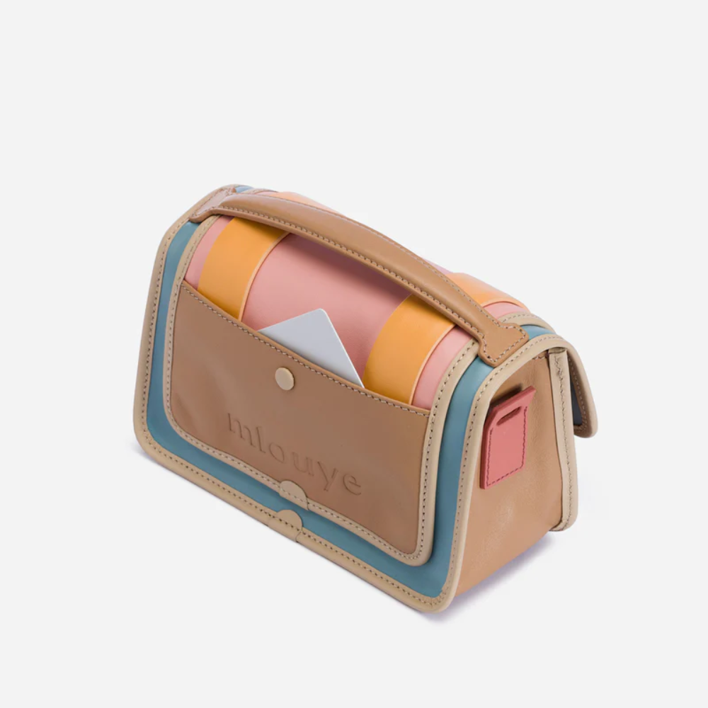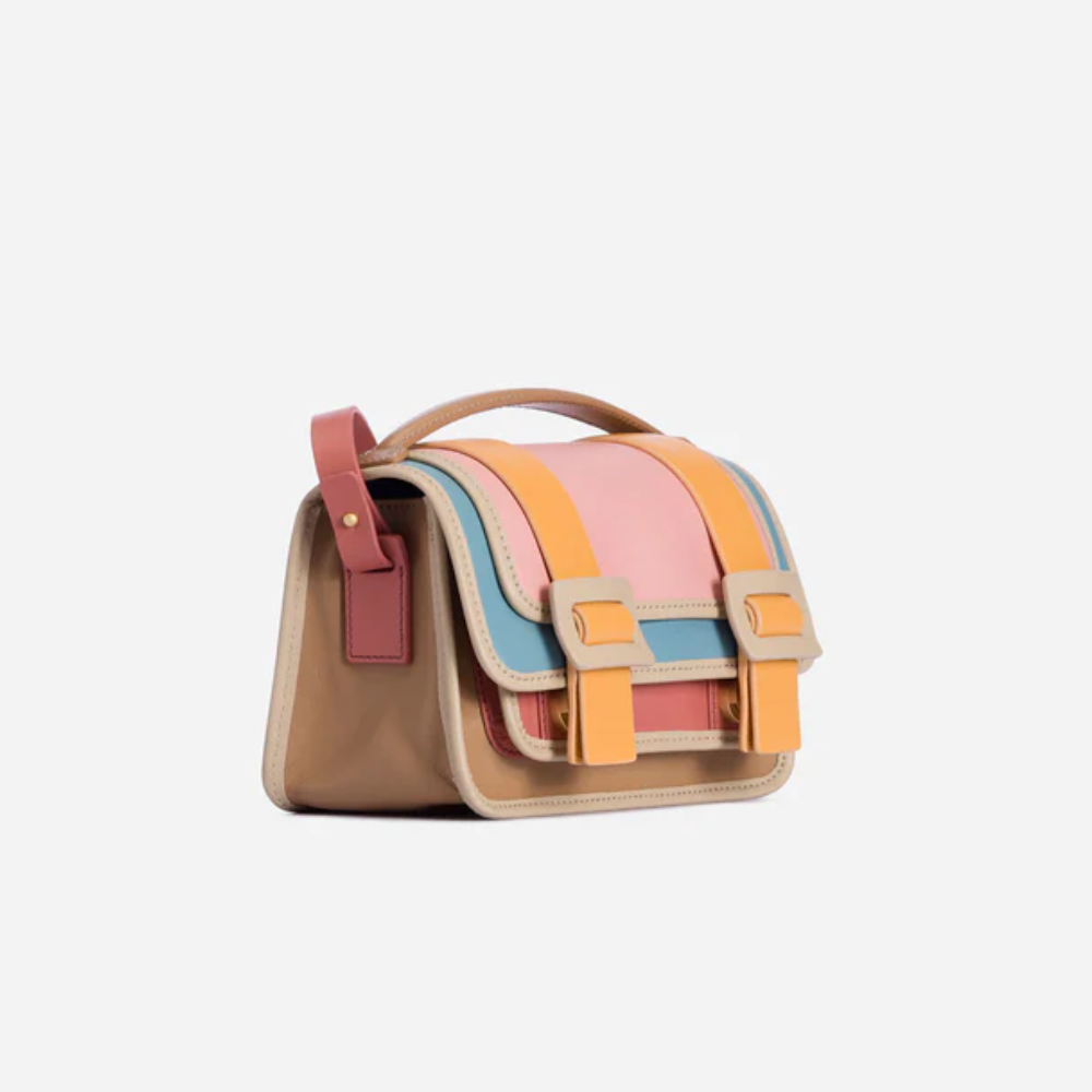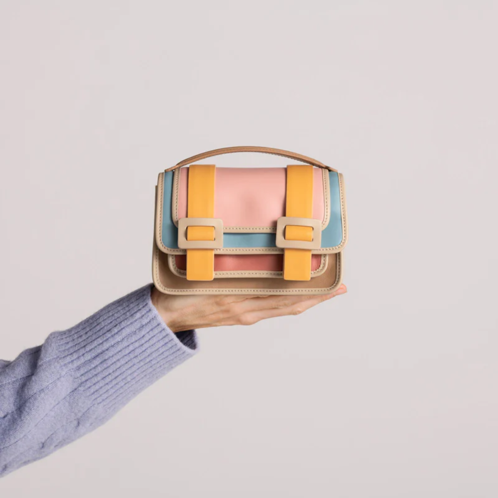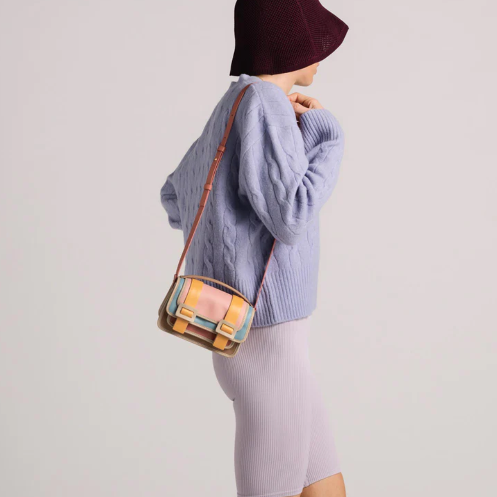 A bag that evokes nostalgia by recreating a classic school satchel with an elaborate approach of the 2000s. This Mini Eddy Gummy mood booster bag is soft, fun, and practical with multiple storage units. It has more than one would expect from a micro bag.