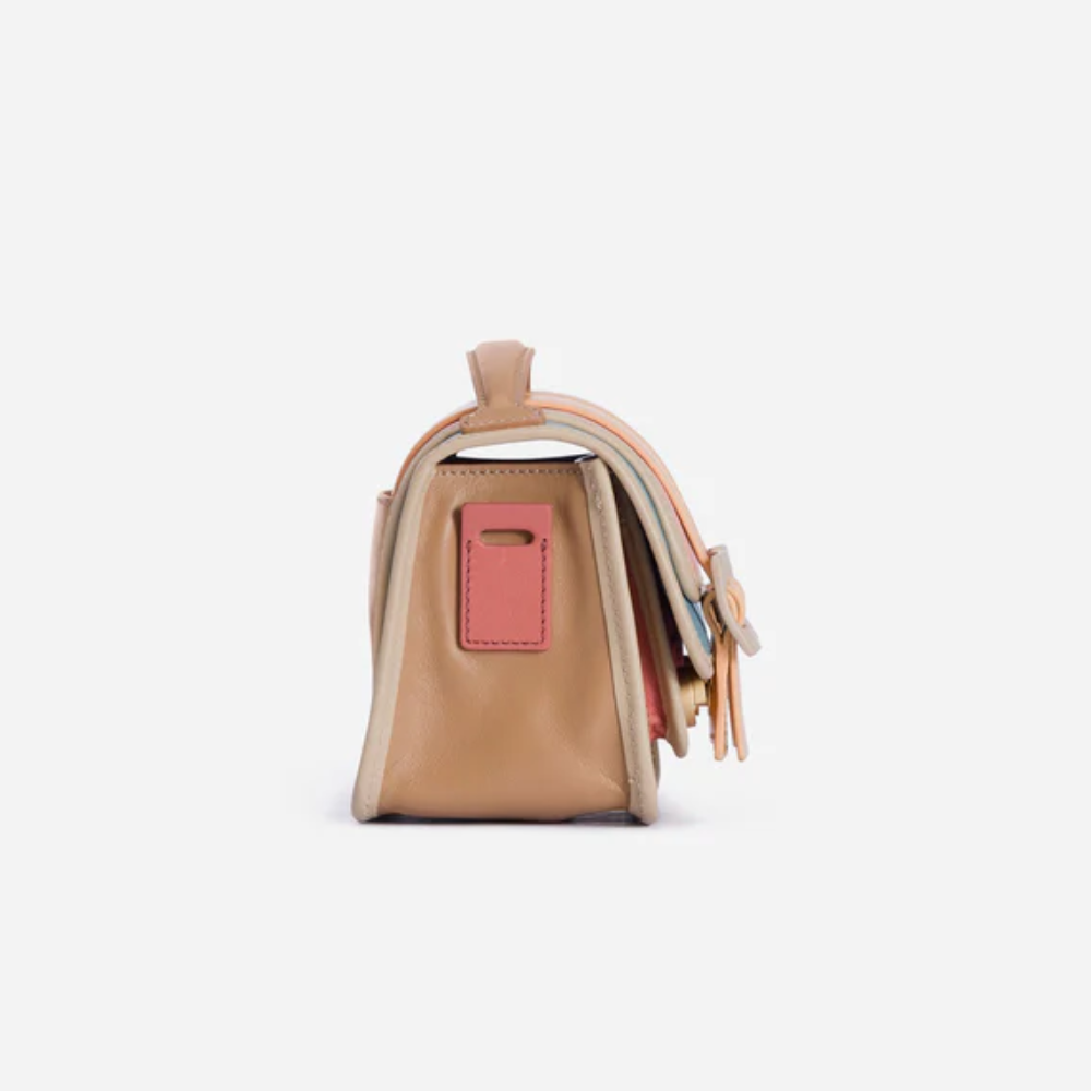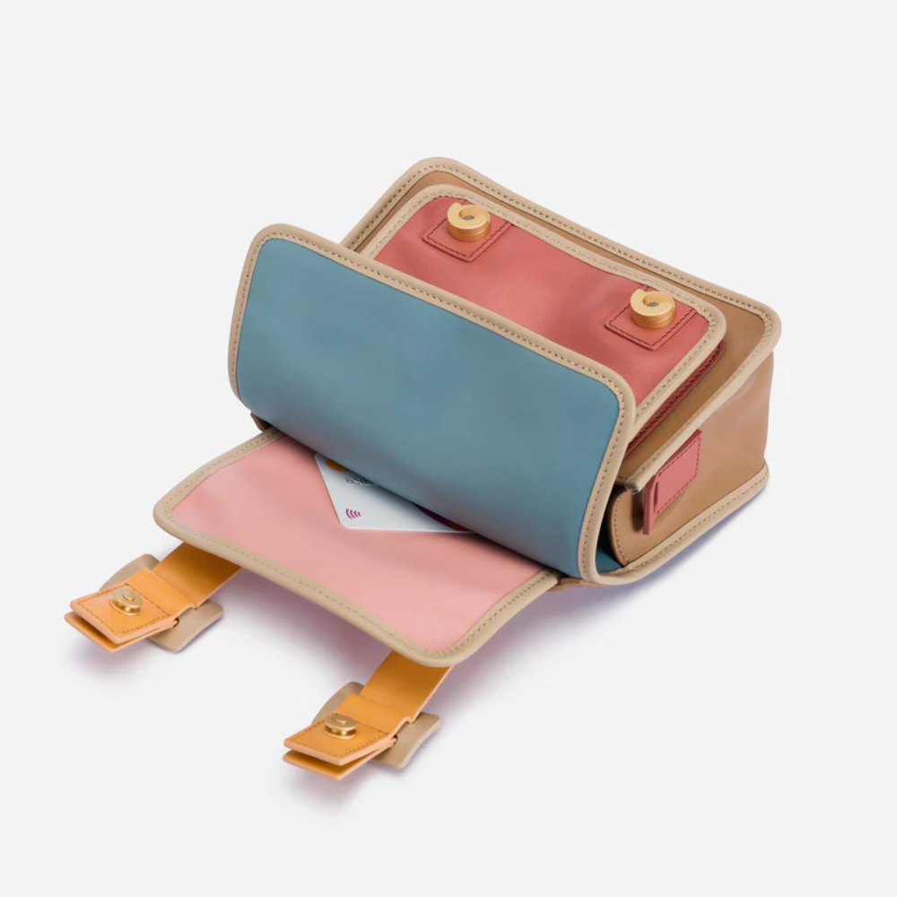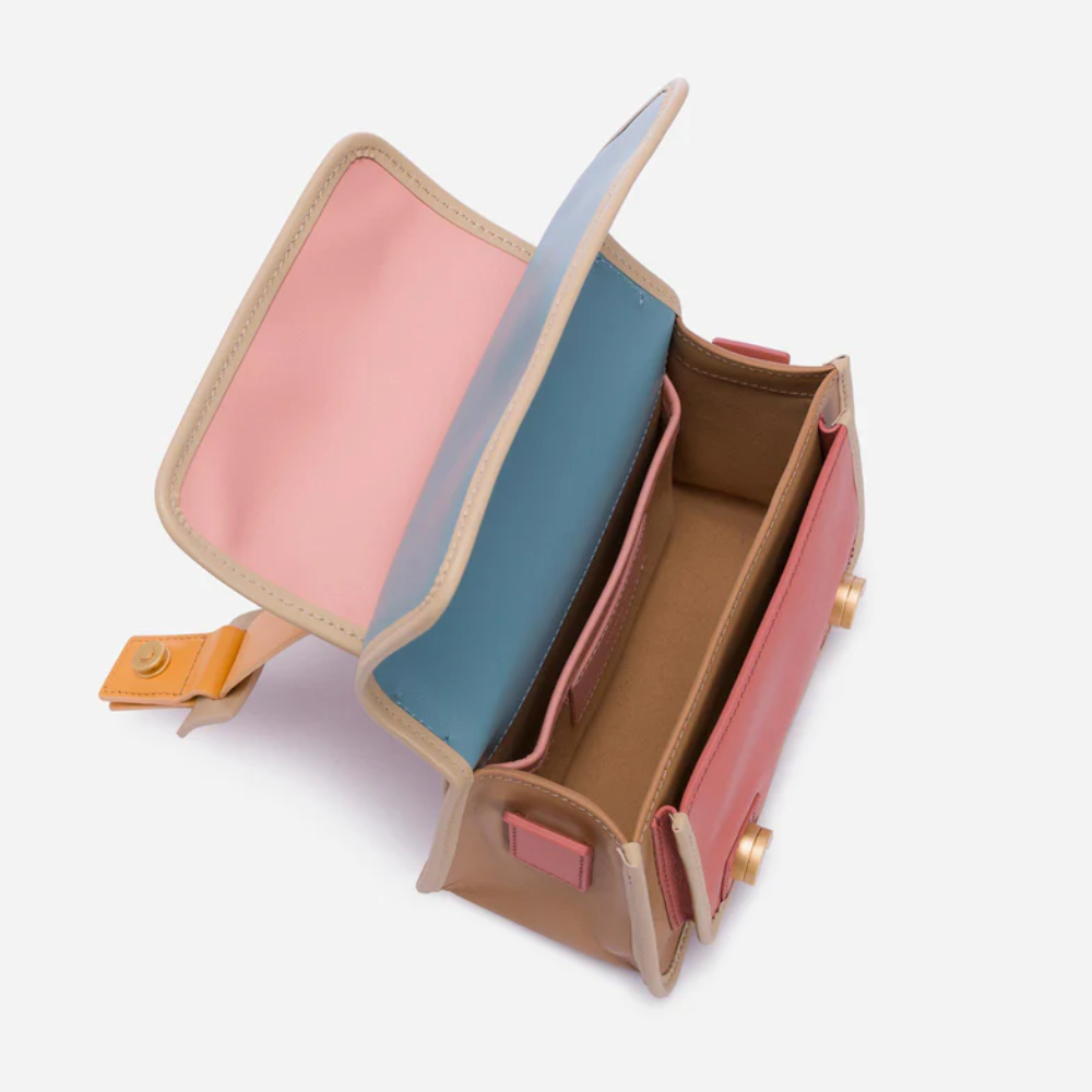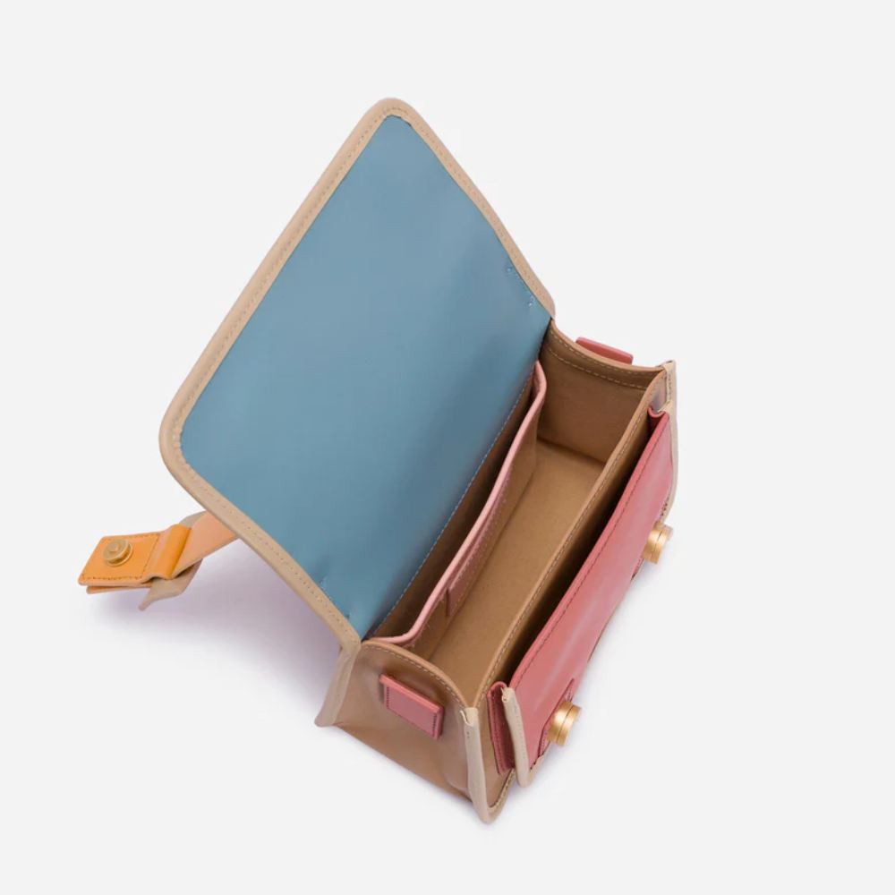 A bag that evokes nostalgia by recreating a classic school satchel with an elaborate approach of the 2000s. This Mini Eddy Gummy mood booster bag is soft, fun, and practical with multiple storage units. It has more than one would expect from a micro bag.