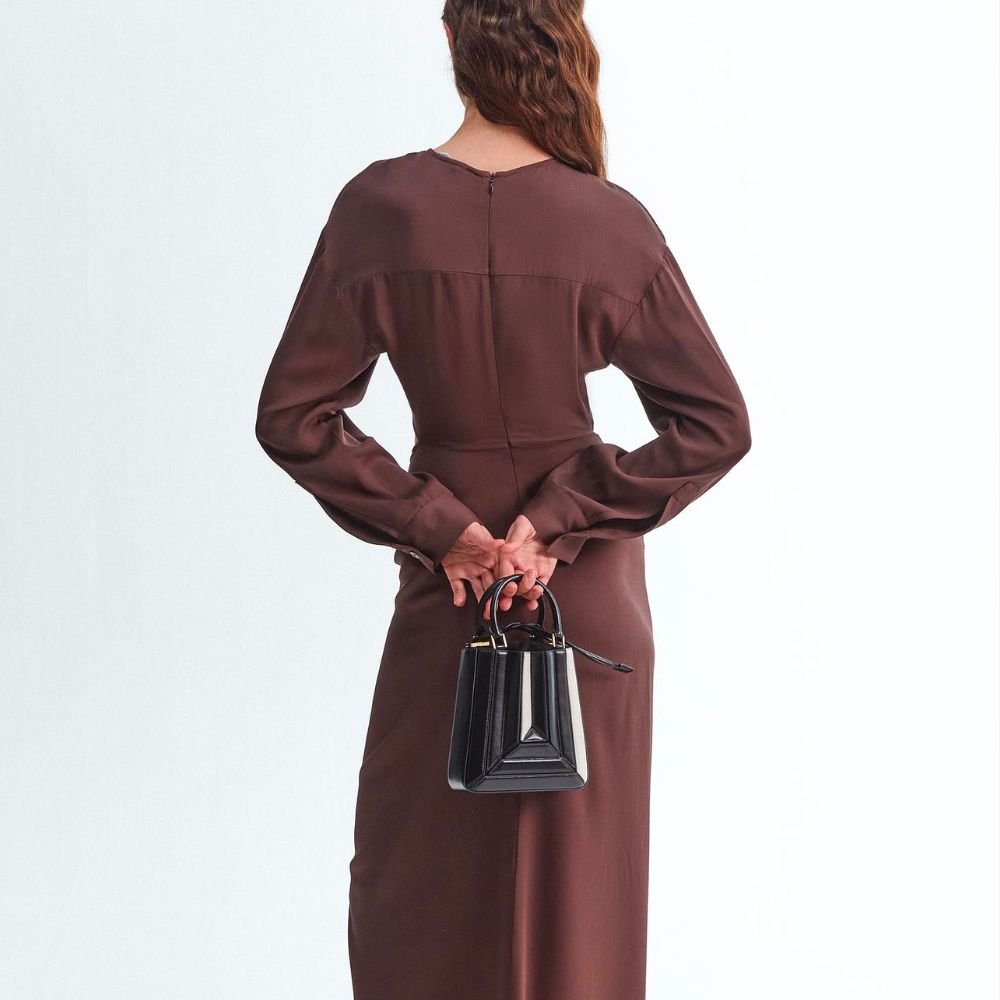 The new Sera Tall Tote is designed to carry your daily essentials. Its exterior design is a surrealist dream, reminiscent of a maze-like structure protruding outwards, with sharp, clean lines, and a 3D façade. It has a suede drawstring top, securing your belongings on the go.