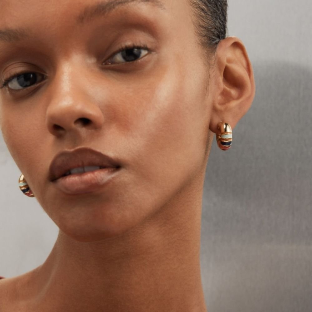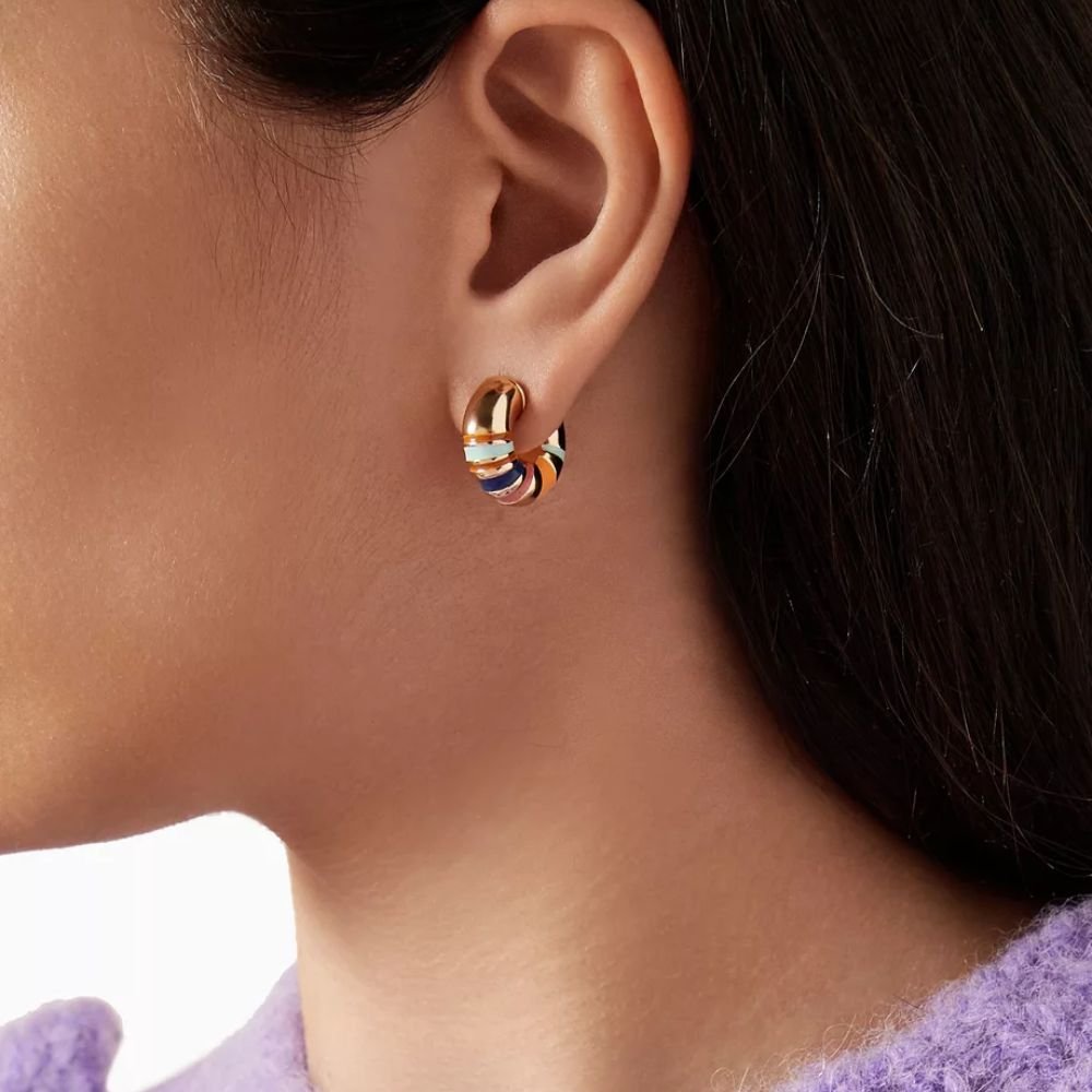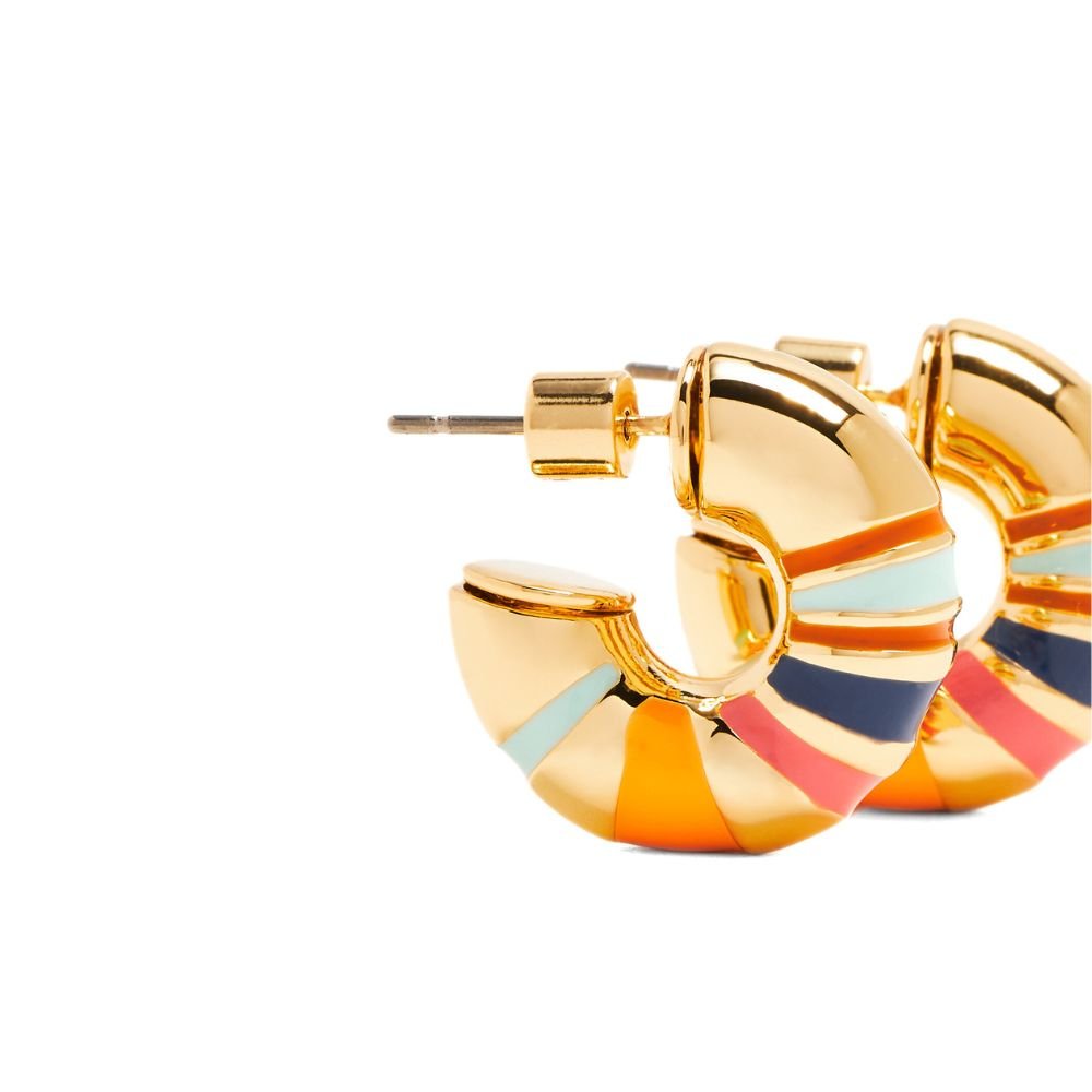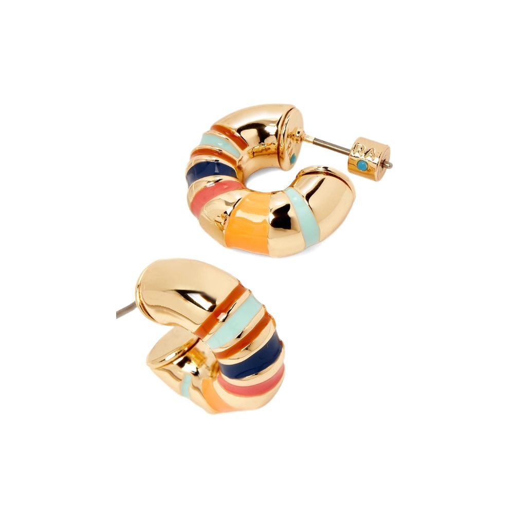 Roxanne Assoulin’s Campania Chubbies Earrings in Gold-tone Plated Brass are the perfect accessory to brighten up your everyday look. Featuring hand-painted enamel stripe detail hoop earrings with titanium posts and butterfly backs, they add a pop of color and style to any outfit.