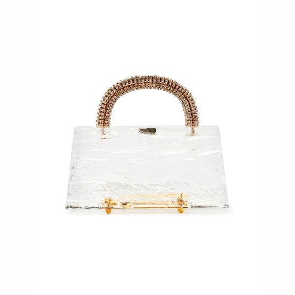 $1,051Designer: Lilian Afshar / L’Afshar Description: The latest ‘Eva’ bag is made from clear acrylic with a crushed ice finish paired with a pair of crystal handles, adding glamour to your look, Details: Comes with a long gold link chain Composition: Acrylic Crystal top handles Comes with a long crystal…