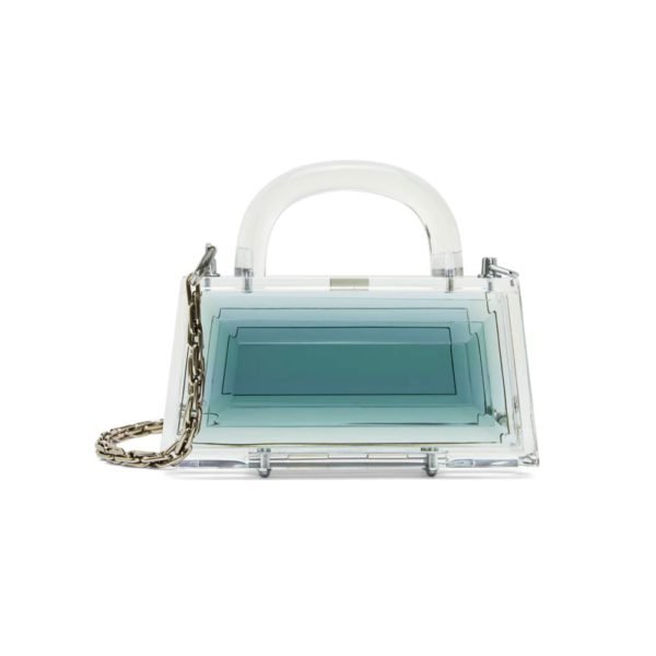 $1,033Designer: Lilian Afshar / L’Afshar Description: The reimagined Eva in a sleek gem-like outline with a light Teal tint, paired with dual clear top handles. Comes with a Silver VII shoulder chain. Details: Dimensions: 15 x 11 x 5 cm Composition: Acrylic Clear Acrylic top handles 24K Electro-plated hardware Magnetic…