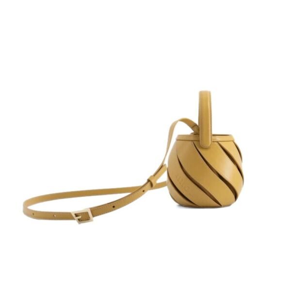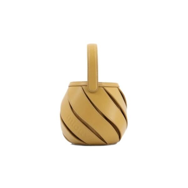 $613Designer: Mlouye Description: The Mini Helix Bag from Mlouye captures the essence of summer breezes with its charming wind spinner silhouette. Perfectly sized for on-the-go elegance, it is crafted from smooth leather and features a clever top handle linked through a hidden joint, allowing it to gracefully fall when switched…