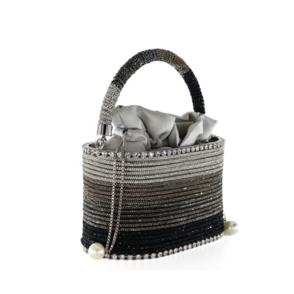 $1,255Designer : Rosantica Description: Rosantica’s Mini Holli Crepuscolo bag is a sophisticated addition to this season’s collection, seamlessly blending understated luxury with timeless design. Crafted entirely from crystals in a striking palette of black, silver and brown. The base is surrounded by faux diamonds, while the handle is delicately adorned…