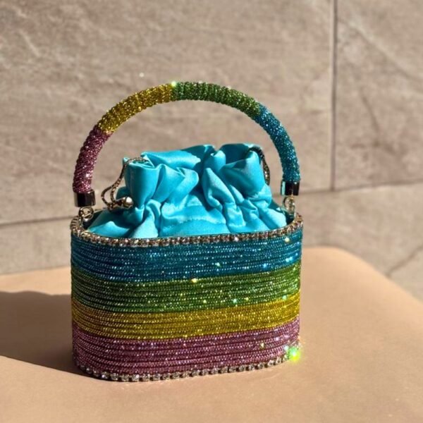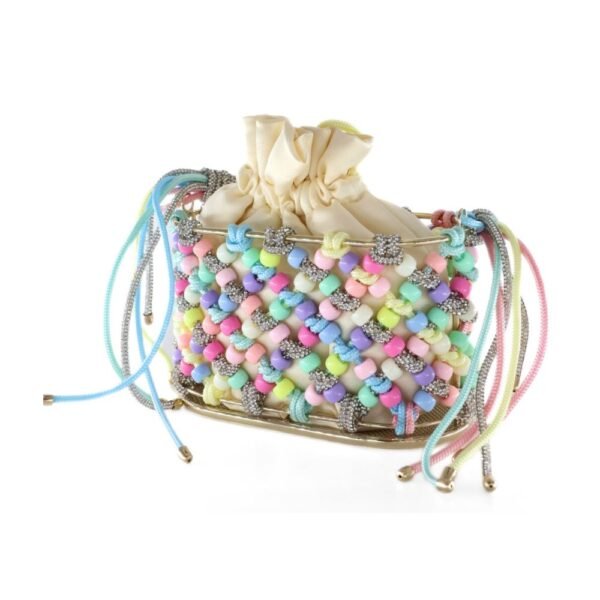 $1,255Designer: Rosantica Description: The Mini Holli Crepuscolo bag by Rosantica is a sophisticated addition to the season’s collection, effortlessly blending understated luxury with timeless design. It is crafted entirely from crystals in a striking palette of blue, green, yellow, and pink. The base is encircled by faux diamonds, while the…