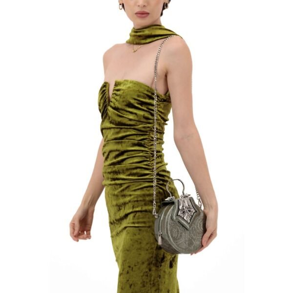 $952Designer: Marzook Description: The Pill-Shaped Clutch from Marzook, crafted from high-quality gold and silver-plated brass, exudes sophistication with its sleek, polished hardware, secure lock, and elegant chain. This eye-catching accessory is the perfect finishing touch for any chic ensemble, ideal for weddings, glamorous events, or a night out. Details: Composition:…