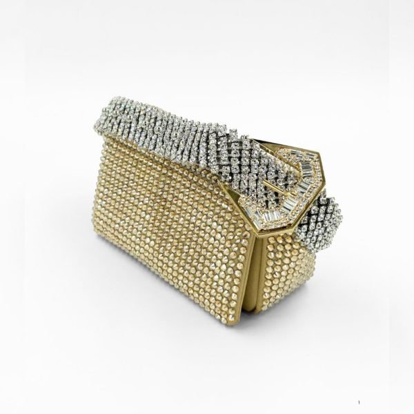 $934Designer: Gedebe Dotted with gleaming crystal embellishments and finished with a jewelled strap, this stylish mini bag lends an edgy element to any ensemble. Details: Rhinestone embellishment Single top handle Foldover top with magnetic fastening Main compartment Internal logo plaque Internal slip pocket Made in Italy Logistics: You will be…