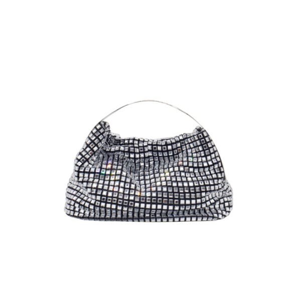 $924Designer: Gedebe Jill metal mini bag by Gedebe made of silver metallic mesh with a single internal compartment, a top zip fastening, an internal metal logo plaque and a top handle finished with crystals and a jewel buckle. Details: Top handle Zipper closure Goldtone and silvertone hardware Made in Italy…