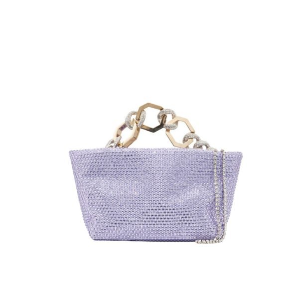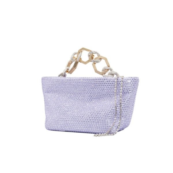 $963Designer: Gedebe Description: The versatile Clo Crystal Net pochette, manufactured in Italy, is stylish and elegant. Details: Elastic texture consisting of synthetic material in pink with metallic effect provides a resistant character Enhanced by glamorous and striking gemstones Handle made from sturdy metal for good grip when carrying (approx. 17 cm)…