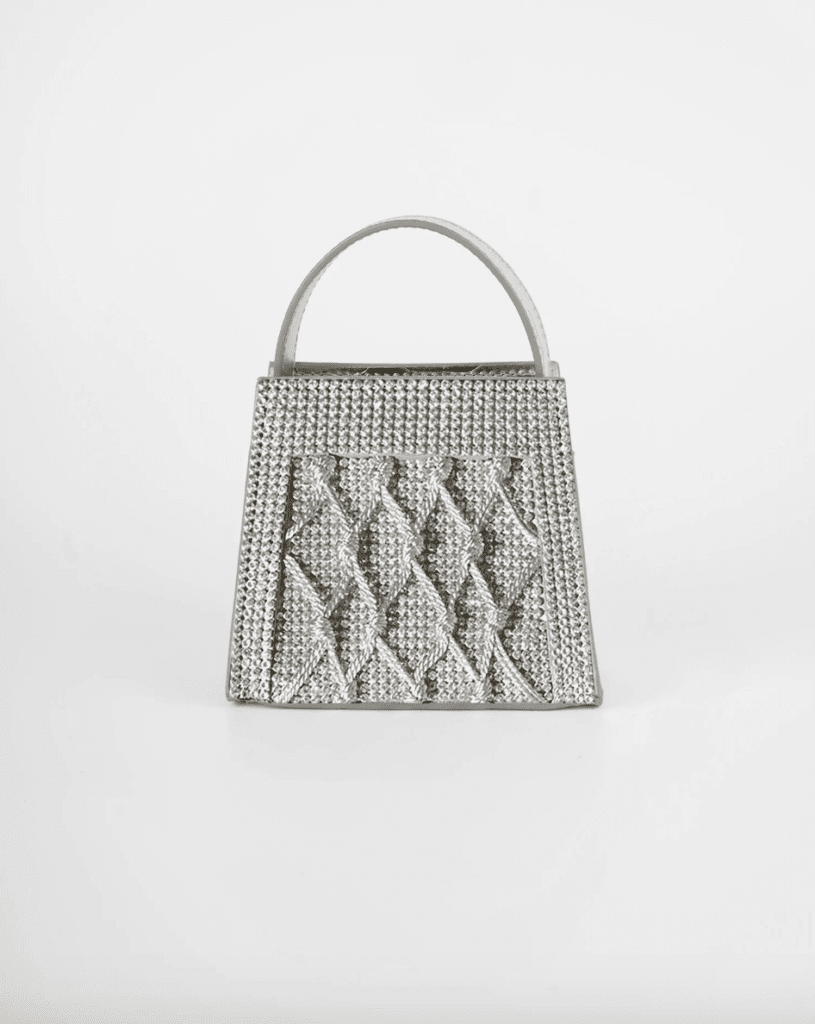 The Amu Silver Crystal mini bag by Pipatchara has us head over heels! The miniature size of the brand’s signature Amu bag is beautiful and expertly crafted. The hand-made knotting it features on its facade–macrame–is a Pipatchara trademark. It is inspired by the brand’s passion for arts and crafts.